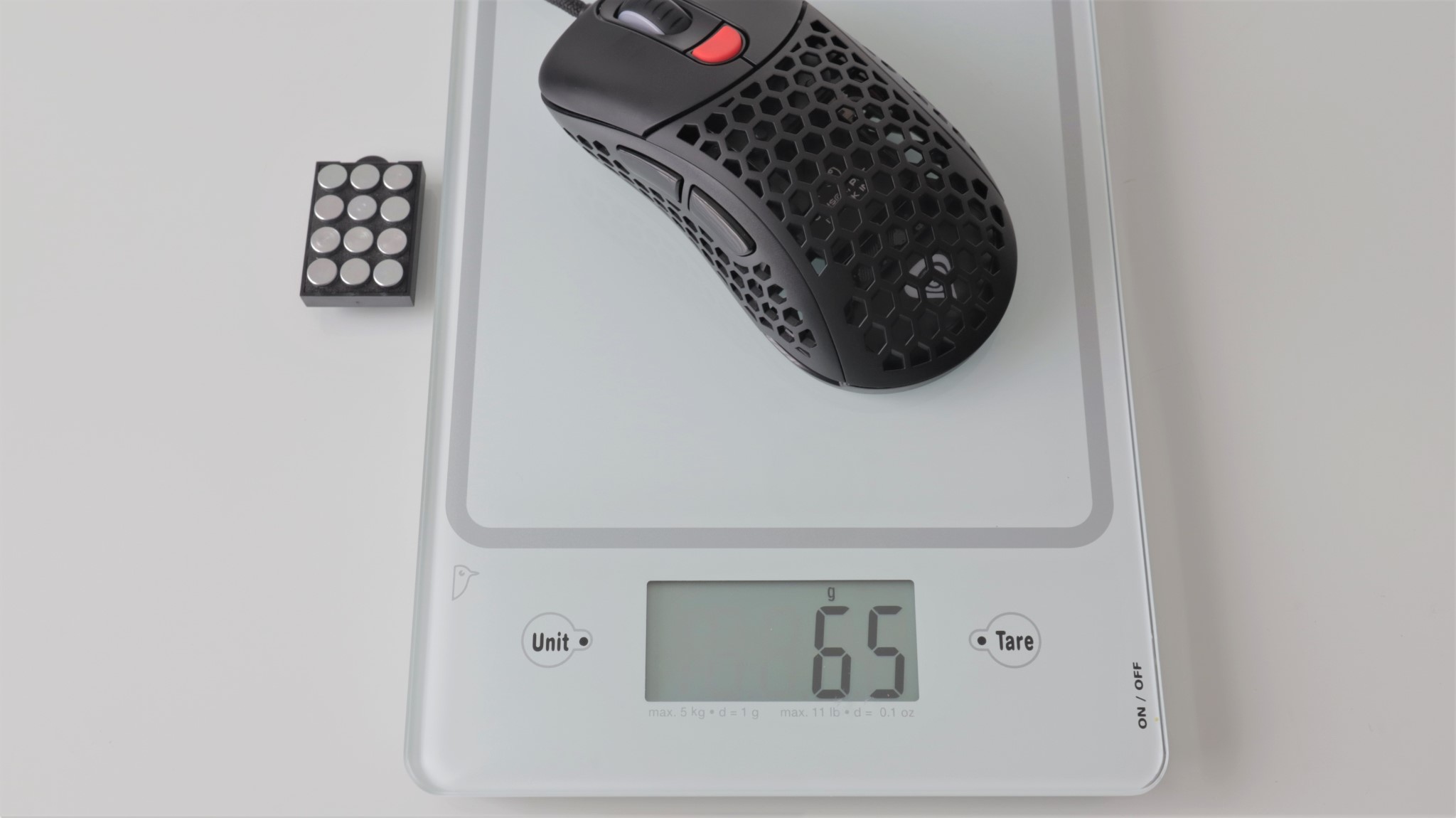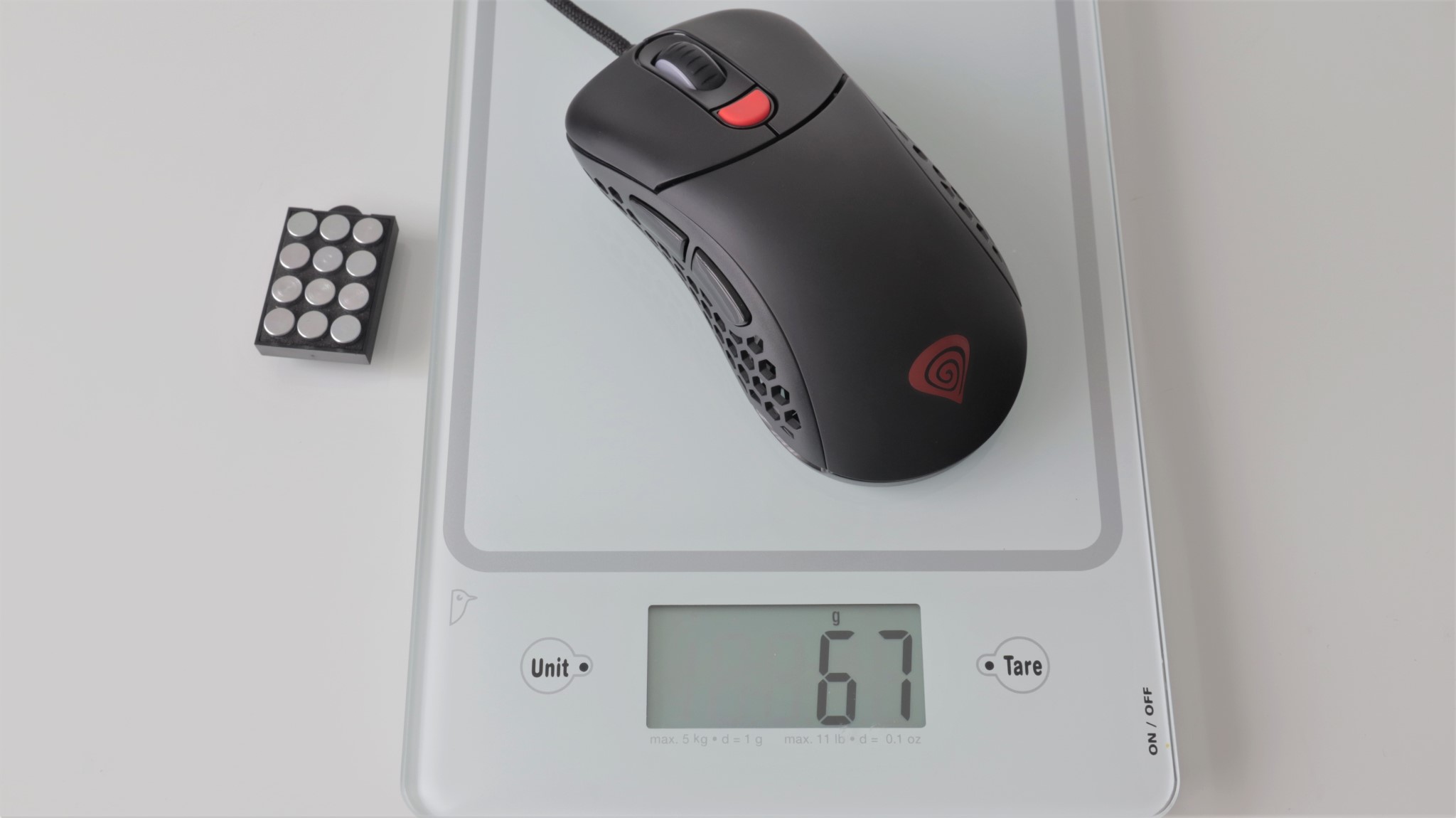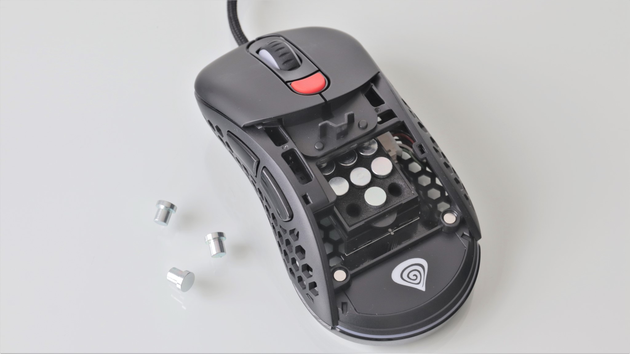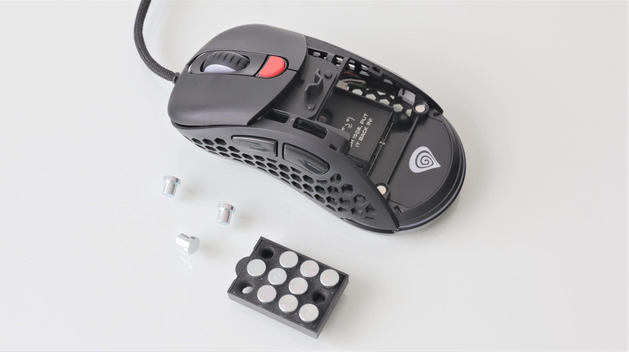 Cei ce vor să adauge ceva greutate acestui maus ce în mod normal este foarte ușor, pot introduce sub carcasă un modul, un fel de sertar, în care pot fi fixate maxim 12 greutăți metalice, fiecare având circa 2 grame.
