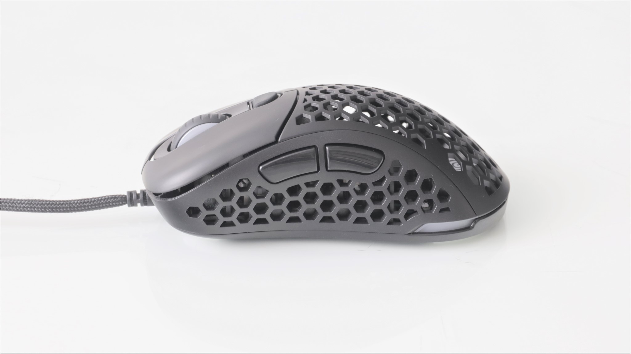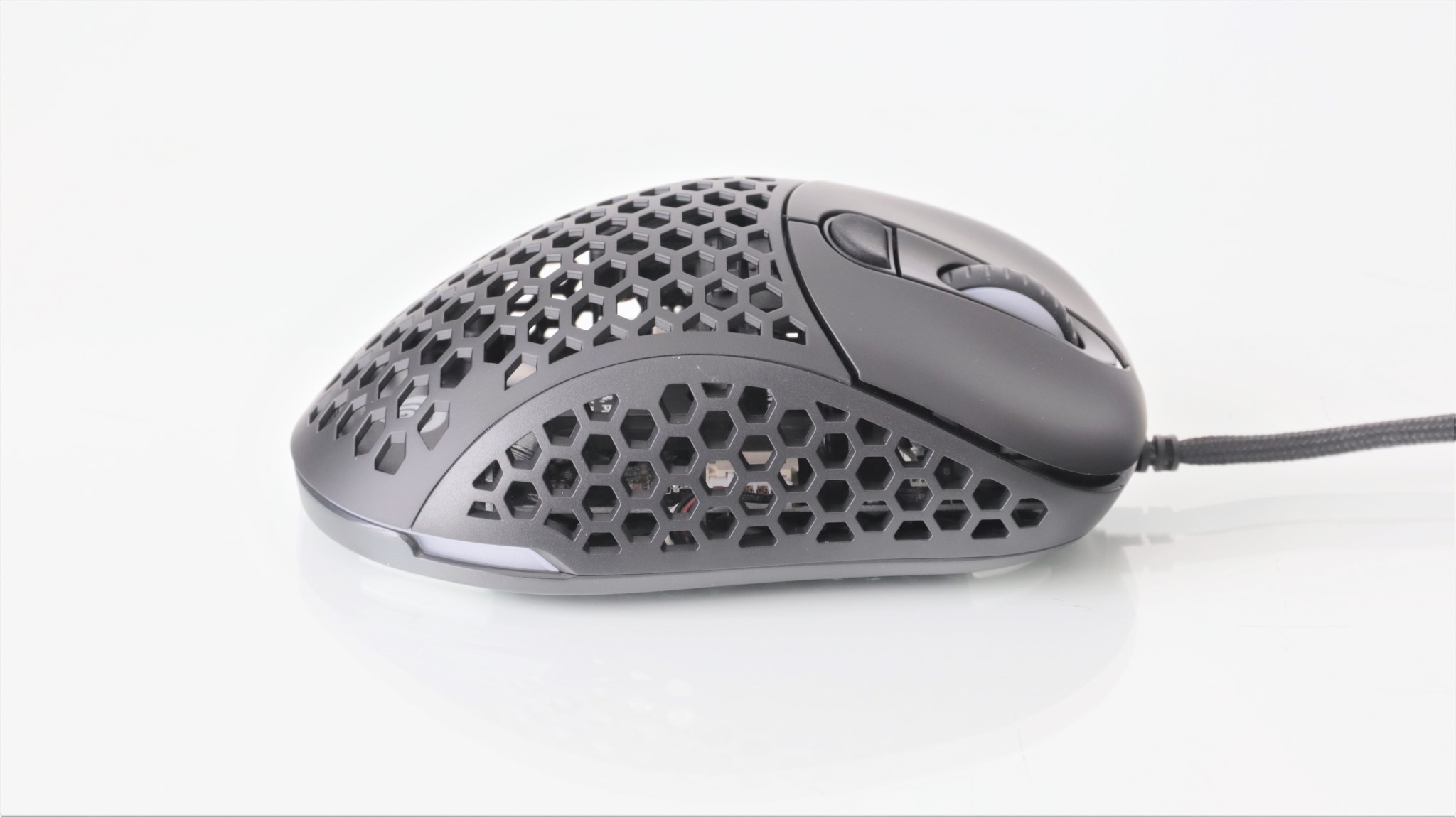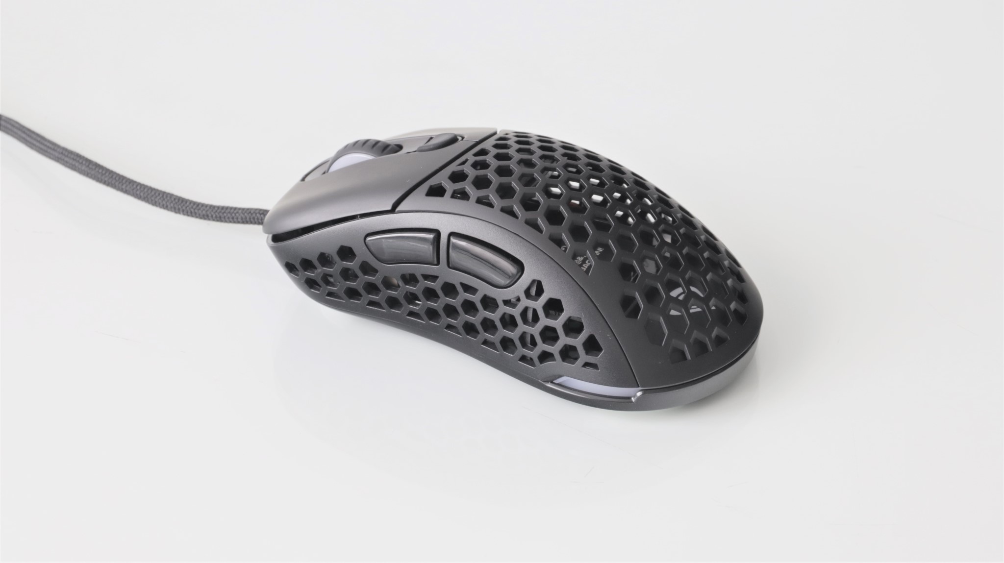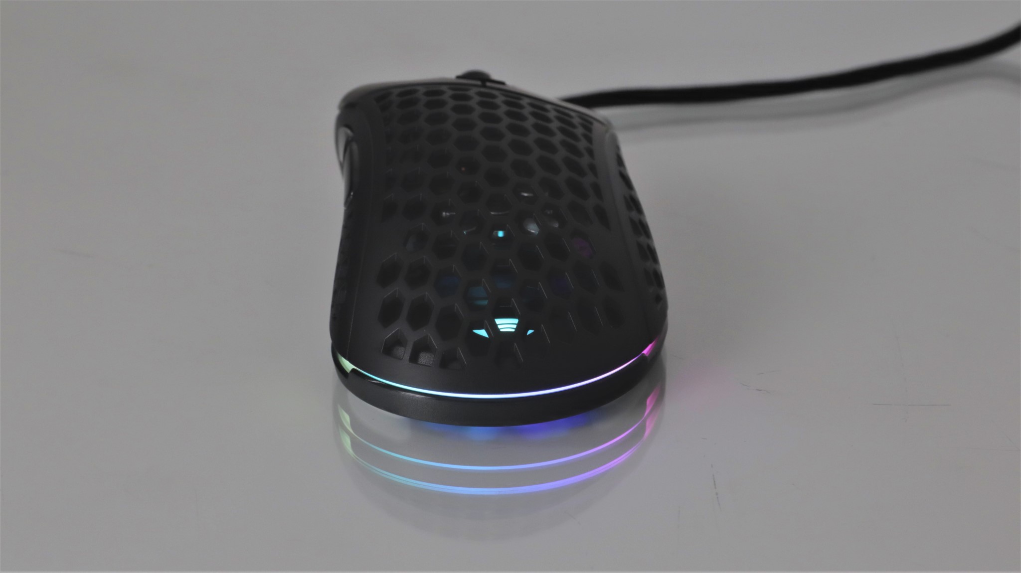 Iluminarea RGB poate fi personalizată cu mai multe efecte, precum și alegerea unei culori stabile. Lumina este vizibilă pe marginile mausului, dar și pe sus, atunci când este folosit capacul perforat. Totodată, rotița de scroll este și ea iluminată.