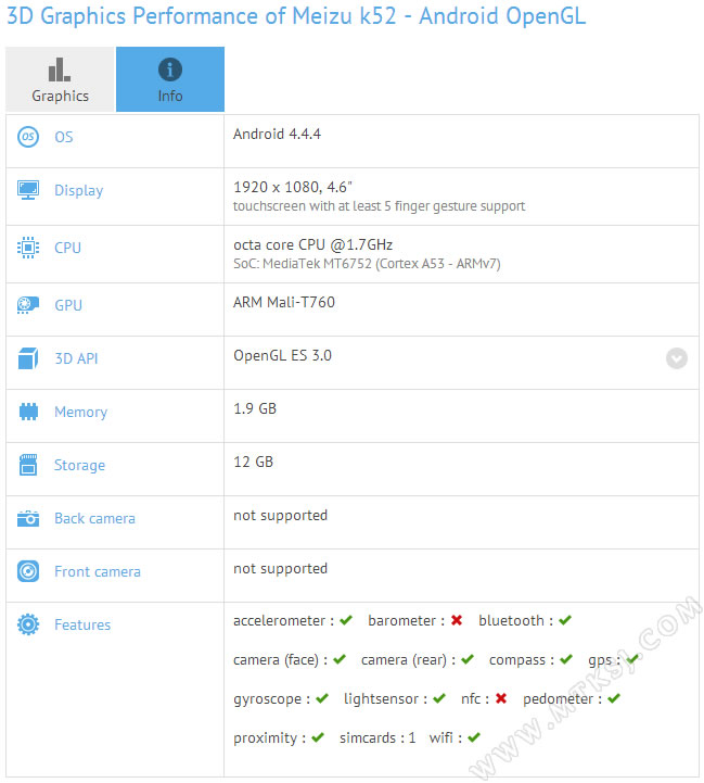 De curând circulă pe internet informaţii apărute în baza de date a benchmark-ului GFX Bench despre un nou device Meizu cu specificaţii interesante. Meizu K52 este numele din teste ale acestui smartphone, iar conform unor surse din China, acest device ar costa la lansare în jur de 160 de dolari.