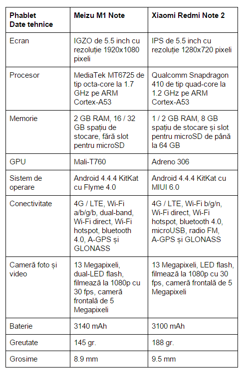 Alegerea logică din tabelul de mai sus este Meizu M1 Note (display Sharp cu rezoluție la 1080p, procesor mai puternic). Pe de altă parte, Redmi Note 2 sunt sigur că va puncta mai bine pe partea de autonomie (rezoluție mai mică a display-ului, procesor quad-core optimizat din punct de vedere al consumului de energie electrică).