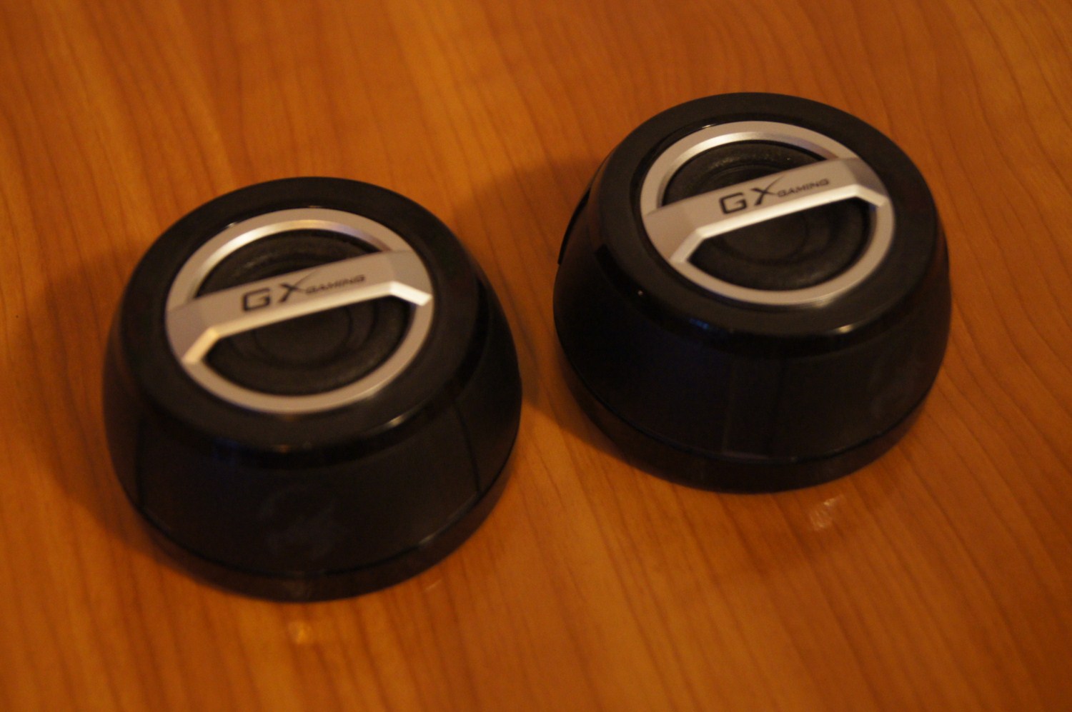 Boxele sunt micuțe, dar oferă un sunet puternic și plăcut, aduc și ceva bass. Date la maxim s-ar putea să se miște puțin pe masă, se transmit vibrații. Sunt rotunde, iar logo-ul GX este înscripționat. Culorile predominante sunt negru și argintiu. Membrana care vibrează se află la vedere. Aș fi preferat să o văd protejată în vreun mod, plus că acolo se acumulează praful destul de repede.