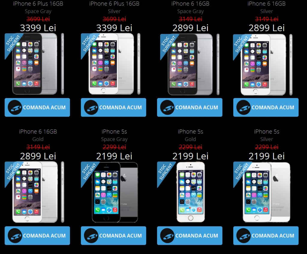 iPhone 6 -> 2.899 lei;