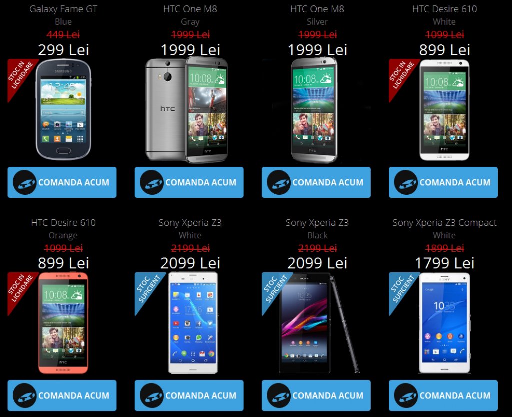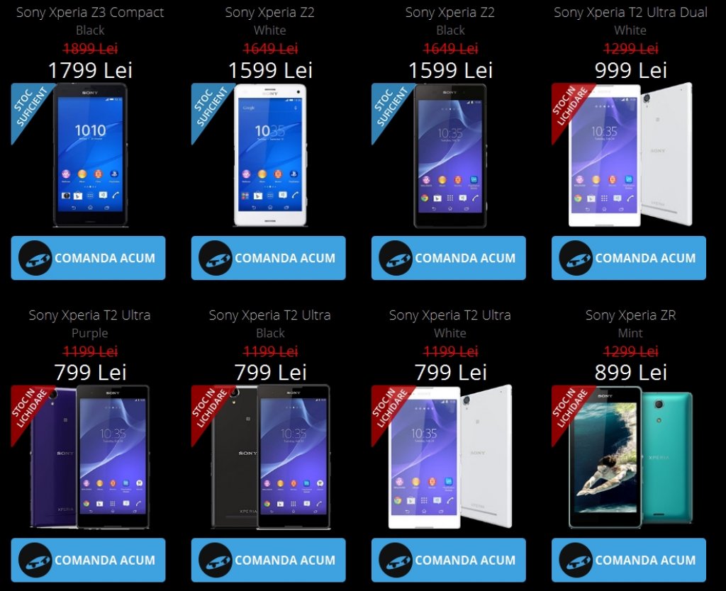 Sony Xperia Z3 Compact -> 1.799 lei;