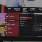 Chiar și designul interfeței OSD este cu tentă de gaming și propune aceeași nuanță de roșu de la exterior. Meniul este structurat logic, nu te încurcă și aduce și scurtături către cele mai importante setări, precum alegerea modului de afișare, input și reglarea volumului ce iese prin jack-ul de 3.5 mm.