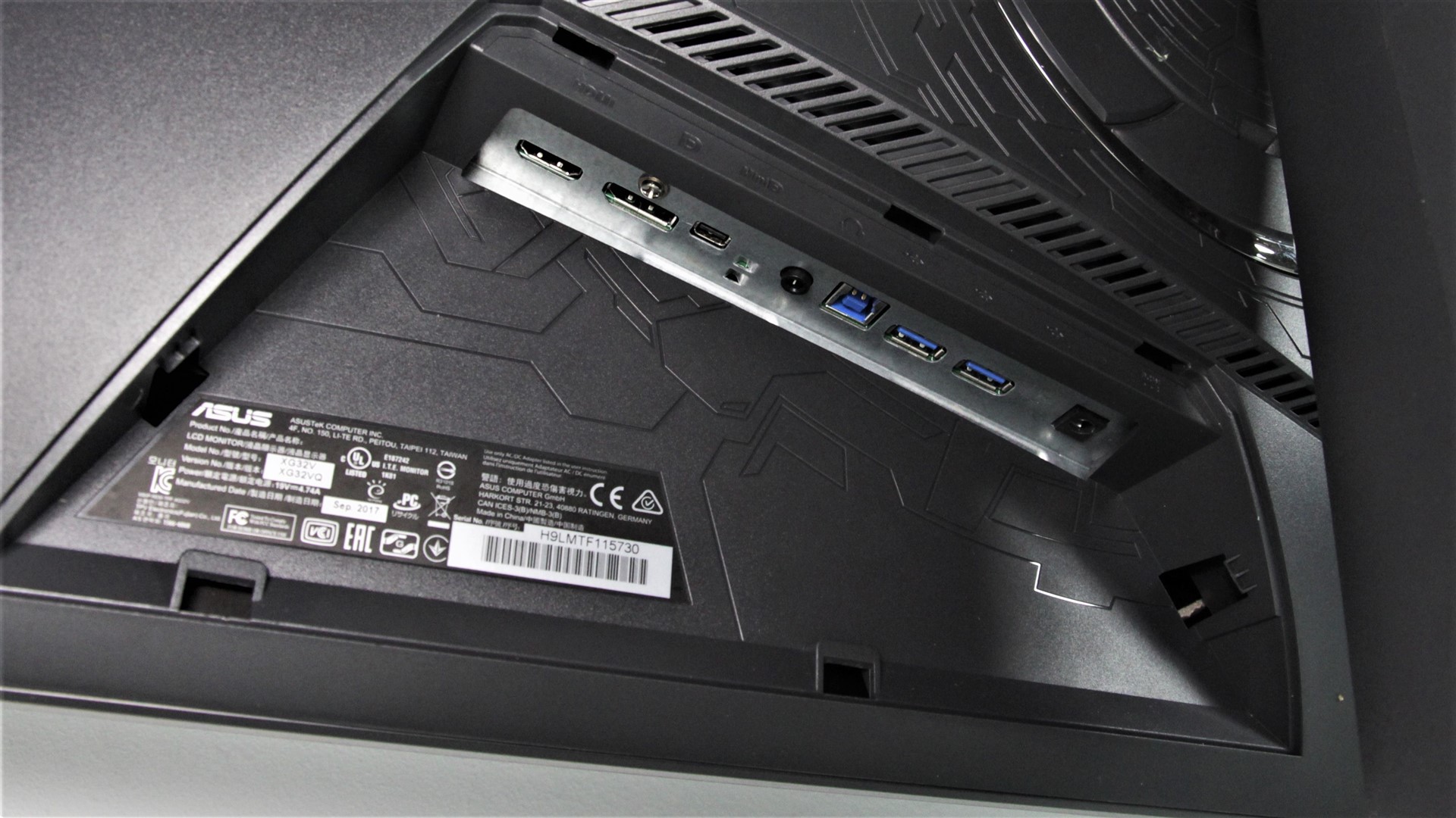 Un mod inteligent de management al cablurilor este prezent pe ASUS ROG Strix XG32VQ. Zona de conectivitate este acoperită de un capac de plastic ce poate fi desfăcut ușor spre a avea acces aici. Cablurile pot fi apoi direcționate prin piciorul monitorului către zona posterioară, rămânând greu de observat.