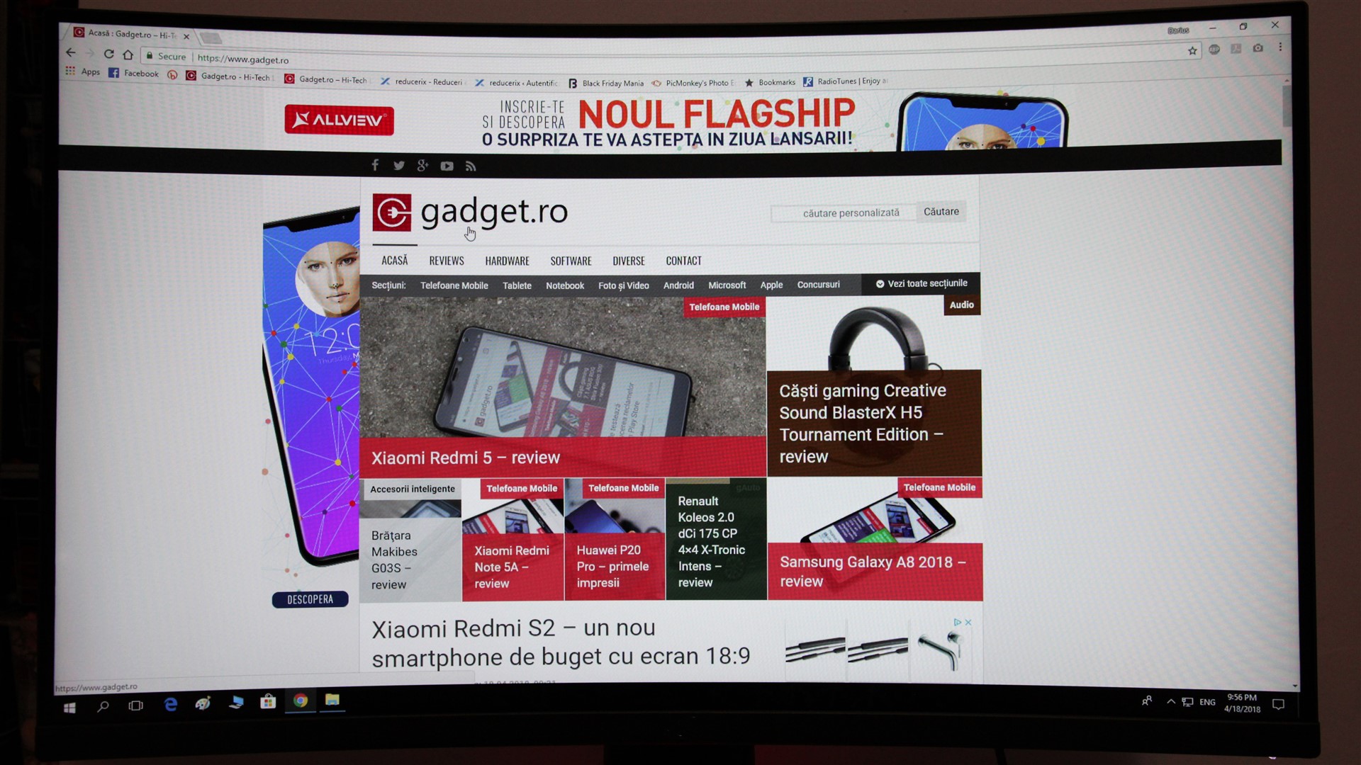 Și, în final, poate cea mai neînsemnată dintre probleme o reprezintă reflexia ecranului. Da, avem panel non-glare, dar am întâlnit și mai bune pe partea asta. Este recomandat ca lumina naturală ori artificială să nu ajungă direct pe monitor pentru a nu deveni deranjantă. Curbura 1800R duce lumina reflectată pe o suprafață mai mare decât în cazul unui panel plat. Din nou, doar cei mai pretențioși vor fi incomodați de asta.