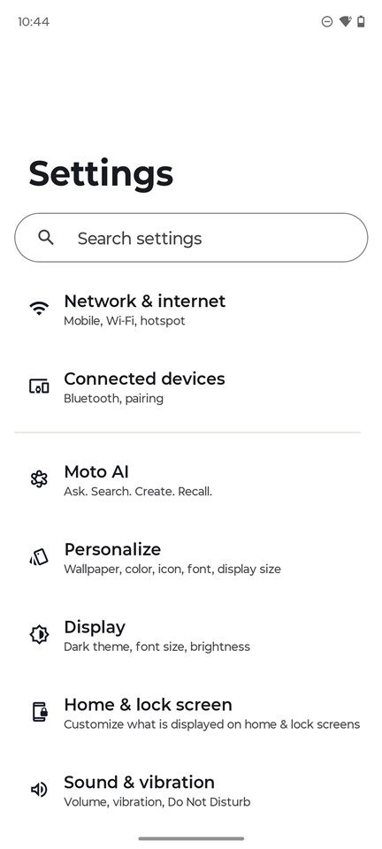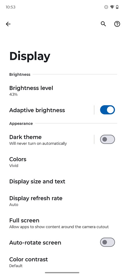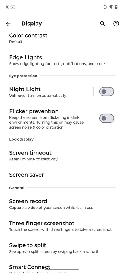 Capturi de ecran din meniul cu setări ale afișajului de pe Motorola Edge 60 Fusion: