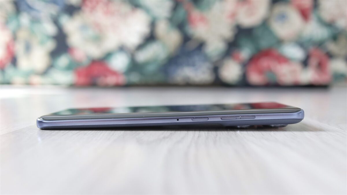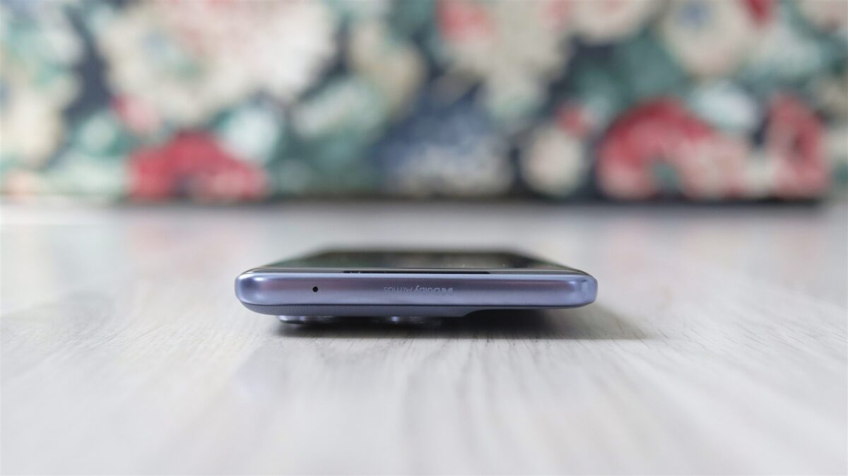 Pe zona de elemente fizice de conectivitate, avem jos portul USB-C, slotul SIM + microSDXC, microfonul principal și difuzorul multimedia, pe stânga nu apare nimic, sus este un microfon secundar, iar pe dreapta sunt butoanele pentru reglarea volumului, cel Power și un al treilea microfon.