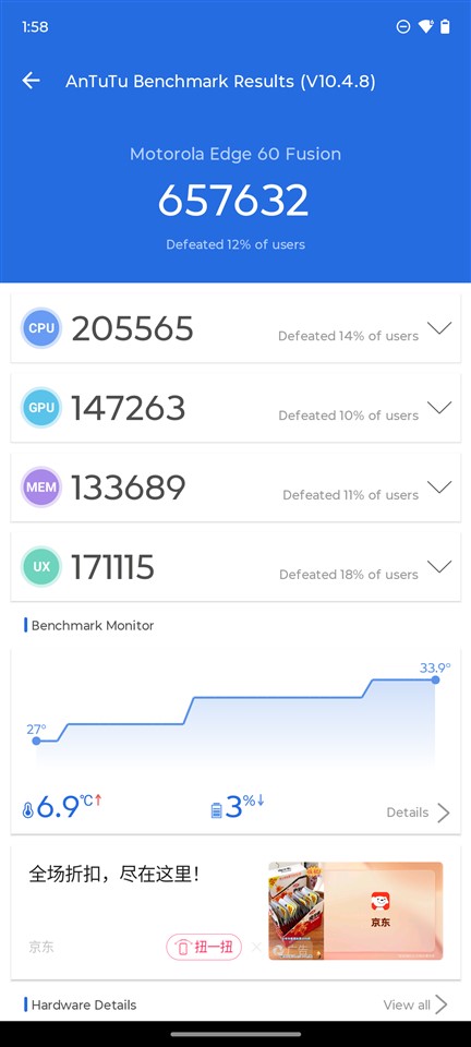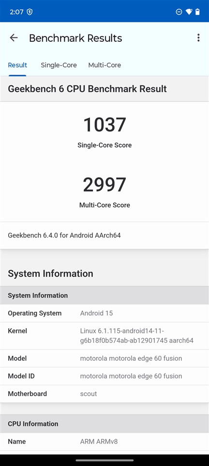 Testele de benchmark rulate pe Motorola Edge 60 Fusion: