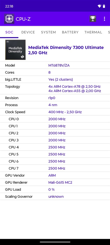| Procesor | MediaTek Dimensity 7300 pe 4nm, octa-core cu 4 x 2.5 GHz Cortex-A78 + 4 x 2.0 GHz Cortex-A55 | |