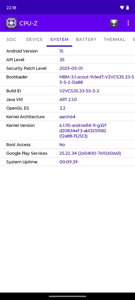 Capturi de ecran din aplicația CPU-Z cu informații despre Motorola Edge 60: