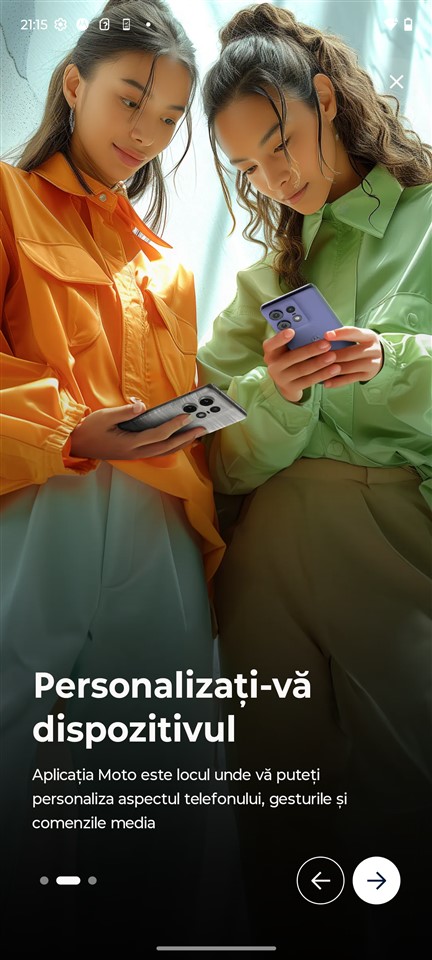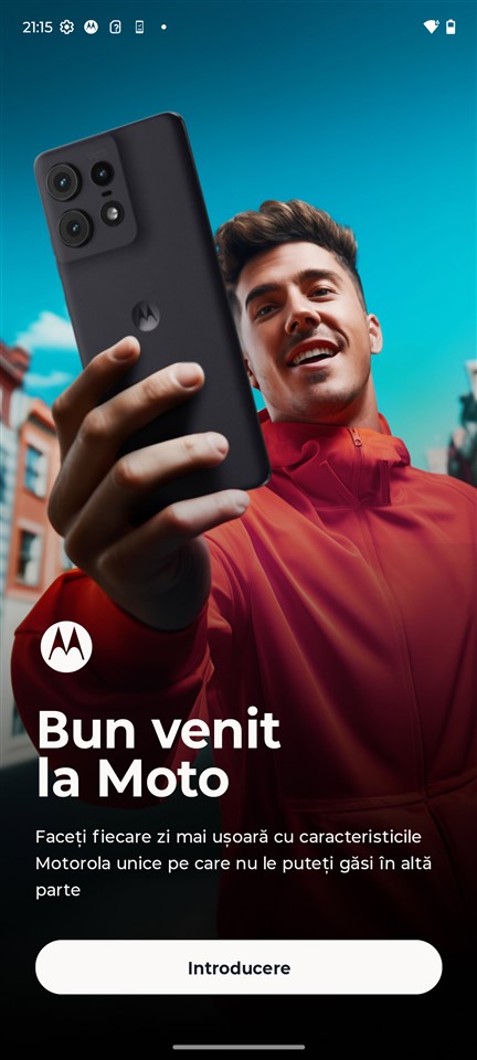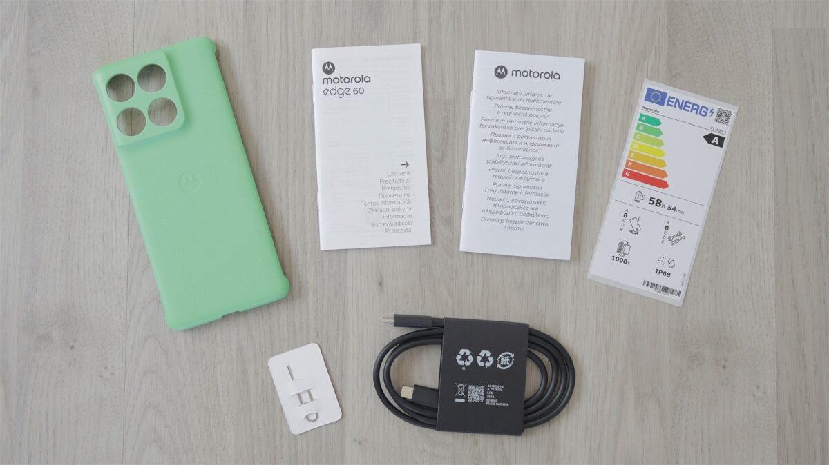 Am primit unitatea de test în cutia sigilată, în care am mai găsit o husă din plastic rigid, cablu USB-C, agrafă pentru acces la slotul SIM + microSD și câteva pliante cu diferite informații. Ca de fiecare dată la Motorola, imediat ce deschizi cutia ești întâmpinat de un parfum foarte plăcut, unul exclusiv Motorola, pe care sincer îl pot deosebi dintre sute de alte miresme.
