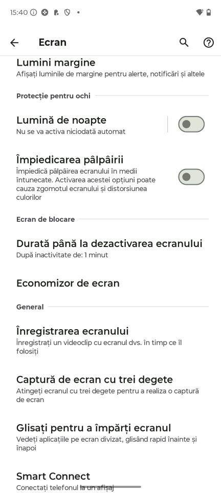 Capturi de ecran din meniul cu setări ale afișajului de pe Motorola Edge 60: