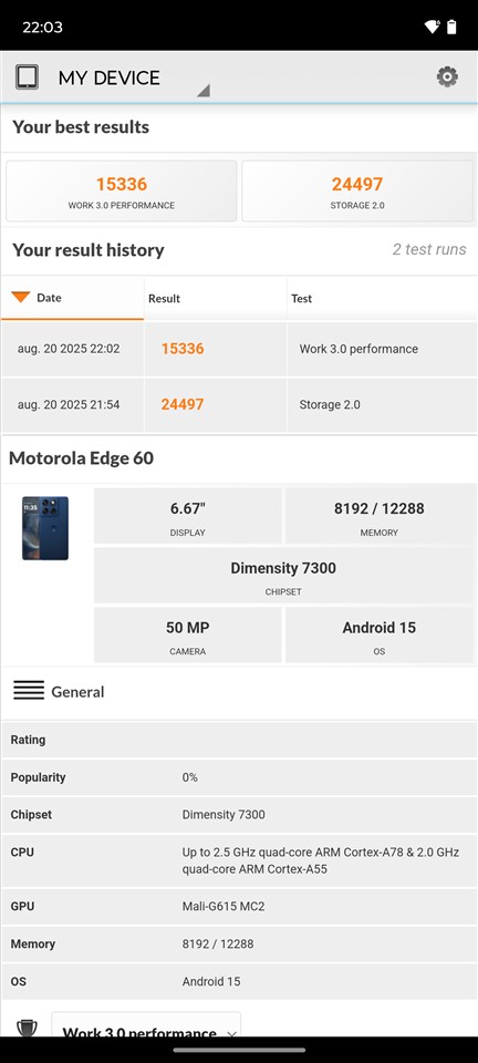 Așa cum probabil vă așteptați deja, nu aveam cum să nu pun rezultatele obținute de Motorola Edge 60 în testele de benchmark alături de cele ale modelului Fusion. Era evident că scorurile vor fi foarte asemănătoare, doar că nu am înțeles de ce 3DMark nu a vrut să ruleze pe Motorola Edge 60… Oricum, scorurile ar fi fost foarte aproape de cele de la Fusion, așa că putem spune că nu am ratat mai nimic.