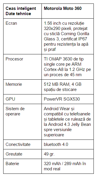 Specificațiile lui Moto 360, primul ceas cu Android Wear pe care am avut ocazia să-l testez: