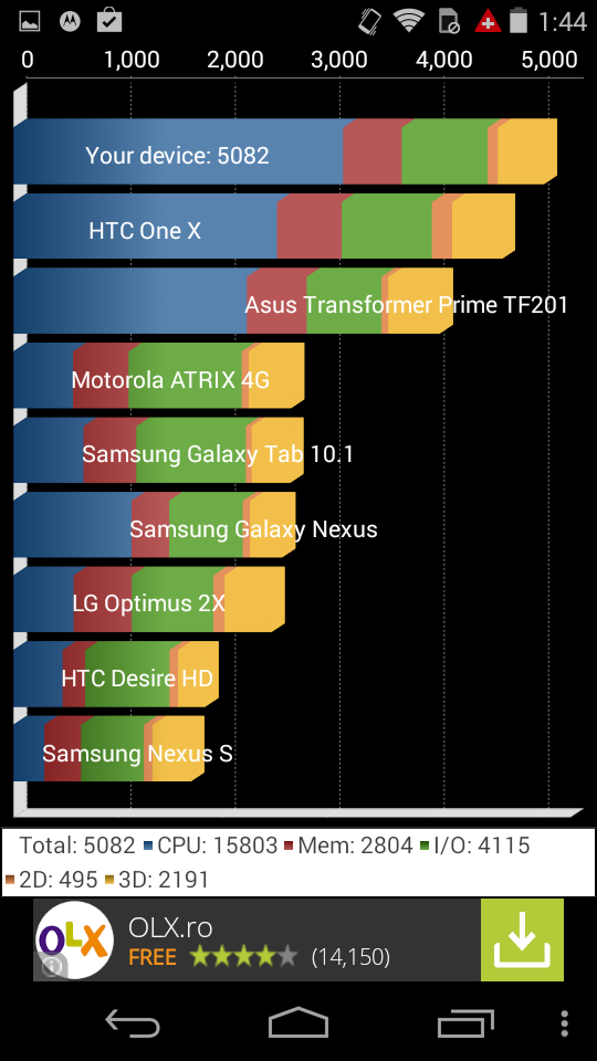 Moto E este un smartphone suficient de puternic pentru jocurile uzuale din Google Play, dar și pe partea de socializare. Nu-l recomand pentru cei interesați de performanțe în jocurile cu grafică complexă. Totuși, Riptide GP2 și Asphalt 8 Airborne le-a dus, fără nicio problemă.
