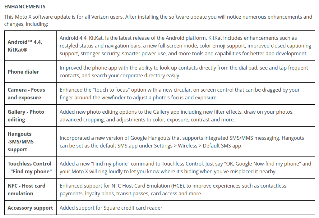 Telefoanele Motorola Moto X achiziționate de la operatorul Verizon Wireless din SUA primesc Android 4.4 KitKat sub formă de update software via OTA. LG Nexus 4, un smartphone din gama Nexus prezentat pe final de 2012 așteaptă 4.4 KitKat și într-un fel nu înțeleg logica Google. Momentan, doar LG Nexus 5 se laudă cu cel mai nou software Android.