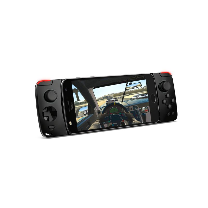 - Moto GamePad – transformă telefonul într-o mică consolă de gaming prin adăugarea de butoane tip joysticks şi D-pad, dar creşte şi autonomia prin încorporarea unei baterii de 1035 mAh;