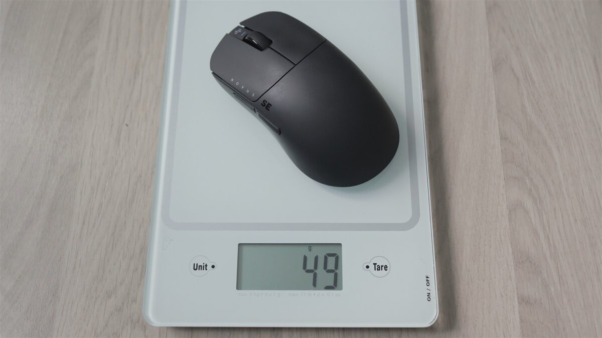 Lipsa oricăror elemente în plus se datorează tocmai dorinței de a obține la final un mouse cu adevărat ușor. Producătorul afirmă că Dark Project Novus SE cântărește undeva la 48 grame, cu o marjă de eroare de +/- 3 grame. Pe cântarul meu, acest mouse s-a oprit la 49 grame, deci deloc departe de promisiuni.