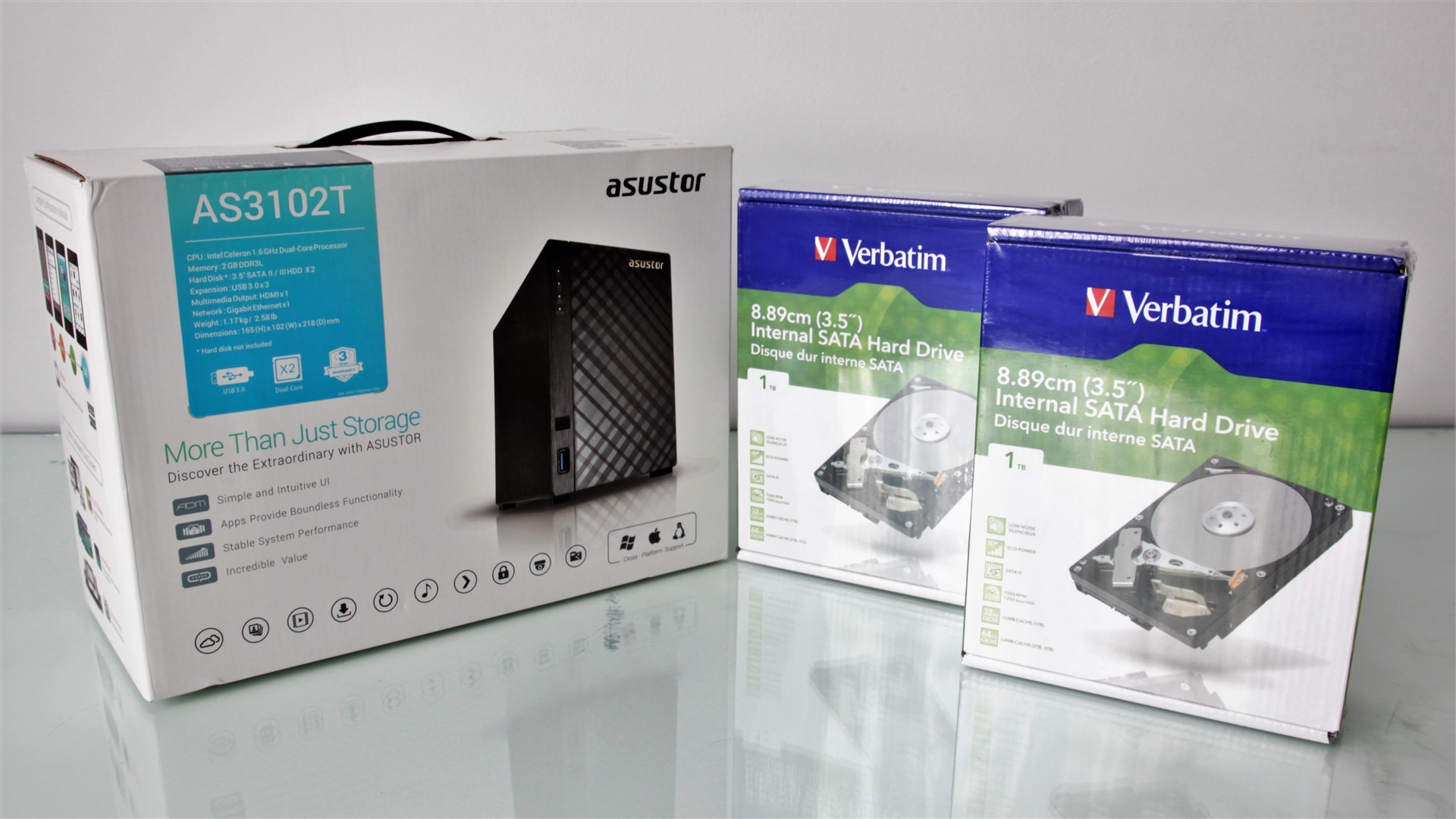 ASUSTOR AS3102T este pus la vânzare fără a include niciun spațiu de stocare, respectiv un HDD. Pentru a-l folosi este nevoie să cumperi separat cel puțin un HDD. Noi am primit pentru test și două unități Verbatim fiecare de câte 1 TB capacitate, pe SATA III cu 32 MB memorie cache.