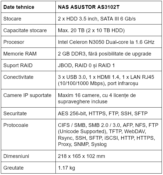 Cam acestea ar fi principalele funcții ale NAS-ului ASUSTOR AS3102T, asta, repet, din punct de vedere al utilizatorului de rând, fără cunoștințe avansate. Cu siguranță că un profesionist va putea face mult mai multe cu un astfel de NAS, deși el s-ar putea să vrea un produs dintr-o gamă superioară (Power User sau Business), cu și mai multe posibilități de configurare și funcții.