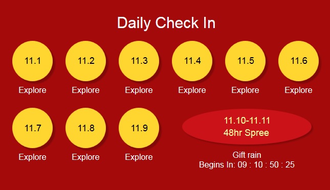 • cupoane de reduceri pentru un număr limitat de comenzi cu valori cuprinse între 2 dolari şi 1111 dolari (dacă dai check la cel puţin 5 zile în perioada 1.11 – 9.11 primeşte garantat un cupon de reduceri de 11.11 dolari ce poate fi utilizat în perioada 10.11 – 12.11);