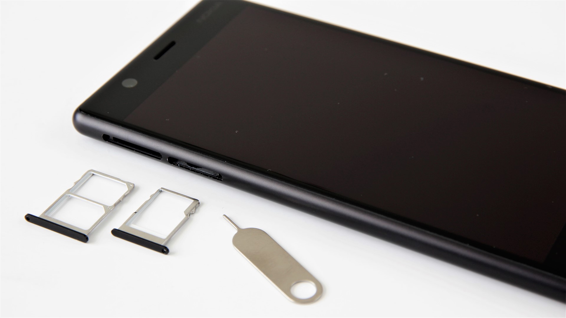 Exemplarul Nokia 3 pe care l-am primit noi la test este unul de tip dual-sim. Acesta acceptă două cartele nano sim în sloturi dedicate, distincte față de cel care poate primi un card de memorie de tip microSD.