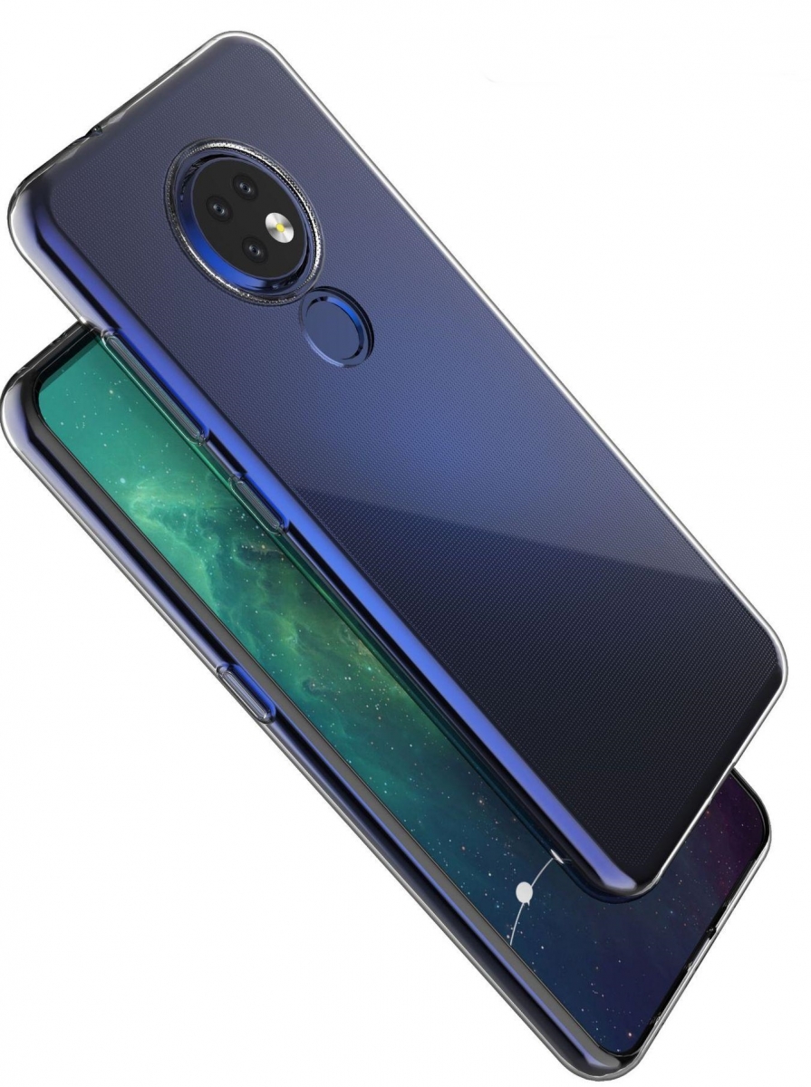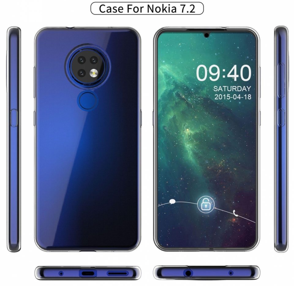 Prin intermediul acestora observăm un Nokia 7.2 cu un ansamblu foto format din 3 senzori şi un LED flash încorporaţi într-un modul circular poziţionat central, un scanner de amprente fizic vizibil imediat sub camerele foto şi un ecran cu breton tip picătură de apă de dimensiuni reduse.