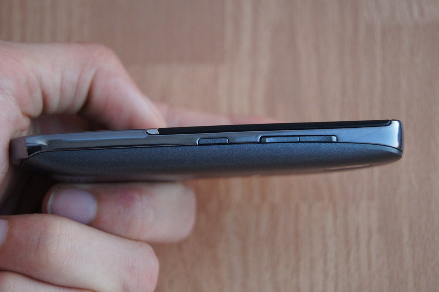 Forma este clasică. Când îl iei în mână vei simiți în prima fază că-i foarte ușor, iar materialele din care-i fabricat sunt de o calitate decentă. Când îl strângeți în mână veți auzi niște zgomote micuțe de la îmbinările mai puțin reușite. Totuși are rama din metal și asta dă o notă de forță, rezistență. Tastele sunt mari și late, bine definite. Te obișnuiești cu ele. Mai greu pentru mine să trec de la o tastatură full qwerty touch de pe Nexus la una alfanumerică. Capacul bateriei se îndepărtează ușor și am uitat să precizez că este dintr-o singură bucată.
