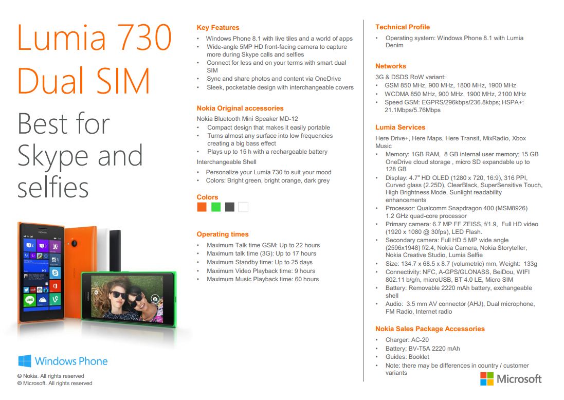 Nokia Lumia 730 & 735 le prevăd un viitor strălucit, cu siguranță se vor lupta în categoria celor mai vândute telefoane cu Windows Phone 8.1. Nokia Lumia 735 este varianta cu 4G / LTE, iar Lumia 730 oferă suport pentru 2 cartele SIM.
