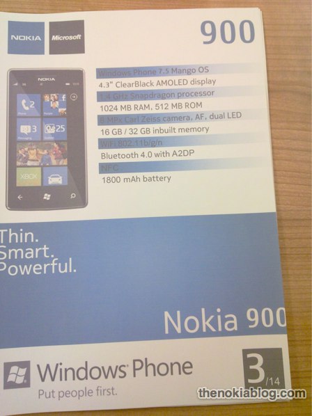 Un flyer cu Nokia Lumia 900 a scăpat în online și îl vedeți mai jos. S-a spus la un moment dat că Nokia Lumia 800 este doar un BMW Seria 5 în viziuna finlandeză a smartphone-urilor. Date tehnice pentru Nokia Lumia 900: