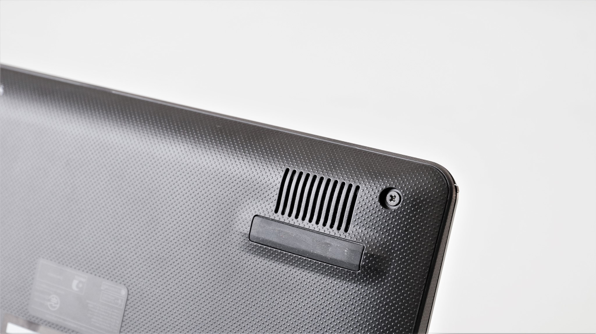 Sunetul extern iese prin zona de jos, prin două difuzoare stereo așezate către colțurile opuse balamalelor ecranului.