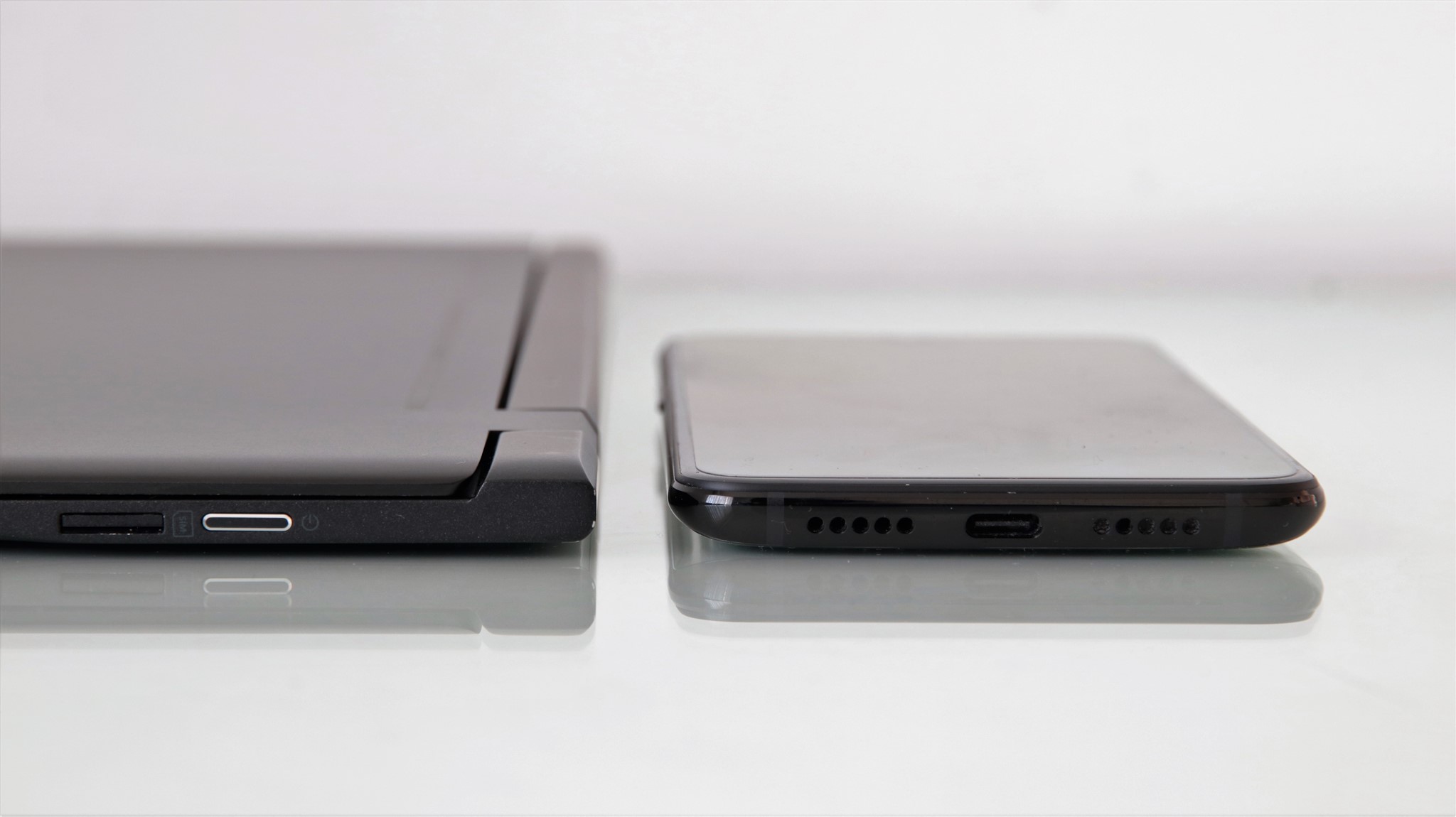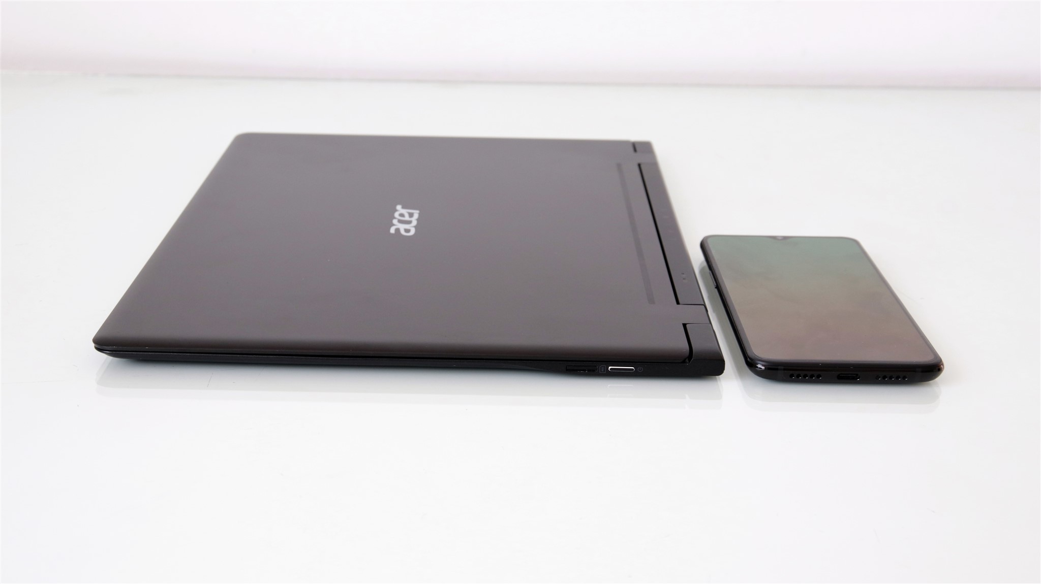 Acer Swift 7 lângă OnePlus 6T: