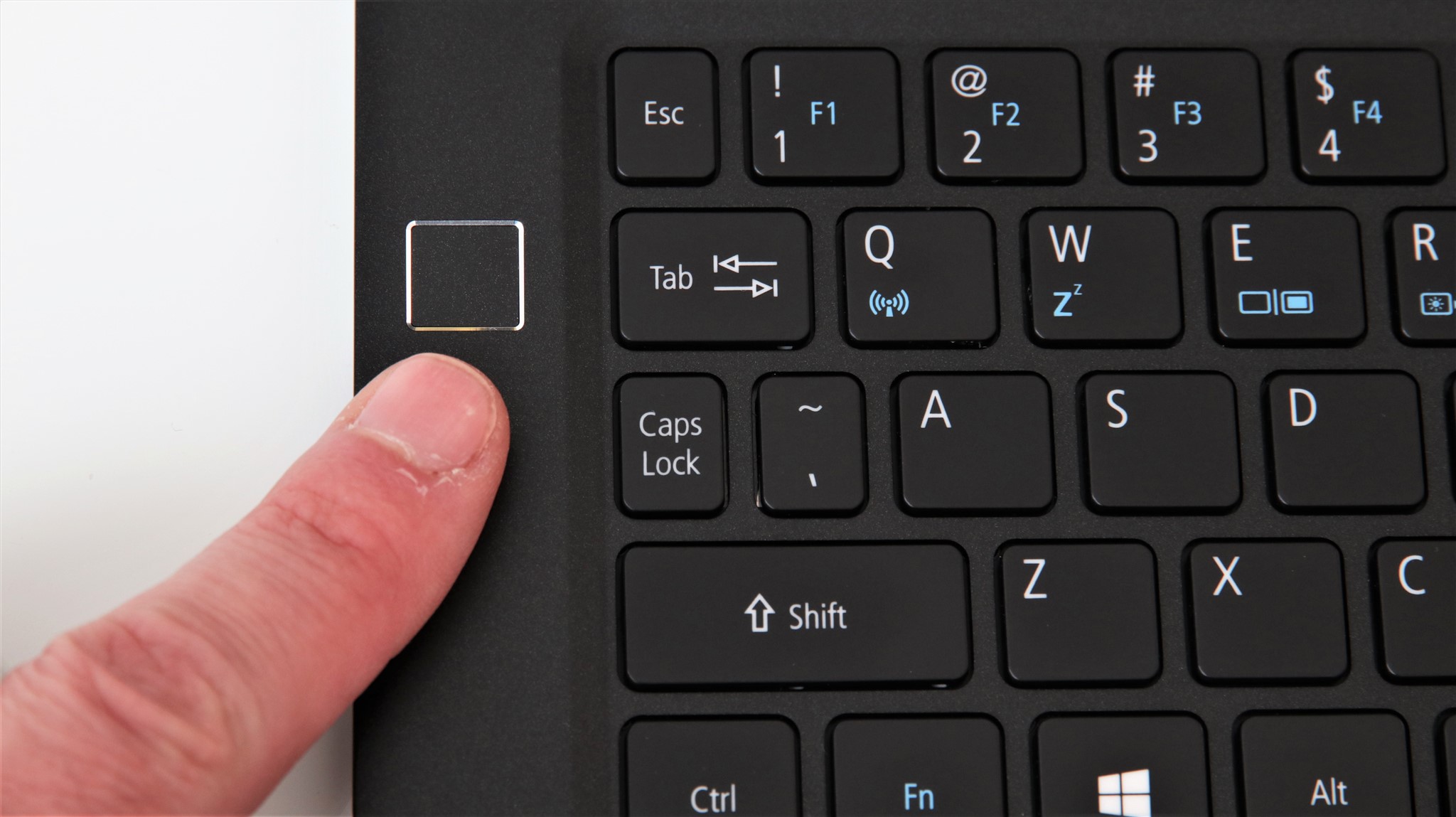 Există și senzor de amprentă pe Acer Swift 7. Acesta este poziționat în stânga tastaturii, undeva în dreptul butonului Tab. Are o rată de recunoaștere foarte ridicată, nu mi s-a întâmplat să rateze. Timpul de răspuns nu este cel mai rapid, dar nu vei folosi acest senzor la fel de des precum pe un smartphone, așa că nu văd asta ca o problemă majoră.