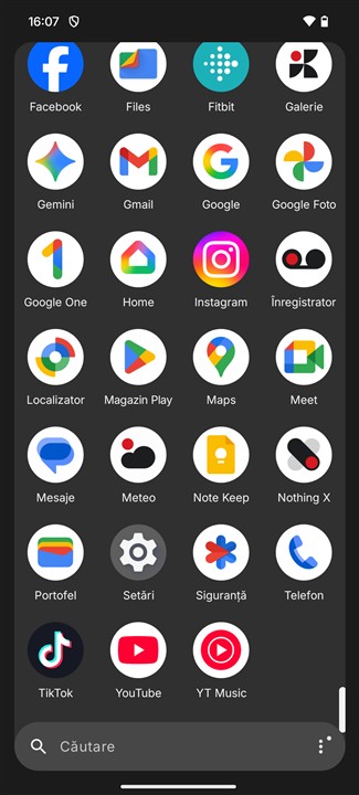 Ca aplicații preinstalate, Nothing Phone (3a) Lite abordează stilul minimalist, să zic așa. Aparte de cele clasice de la Google, mai avem suplimentar doar Essential Space, Facebook, Galerie, Instagram, Înregistrator, Meteo, Nothing X și TikTok. Bine, foarte bine așa.