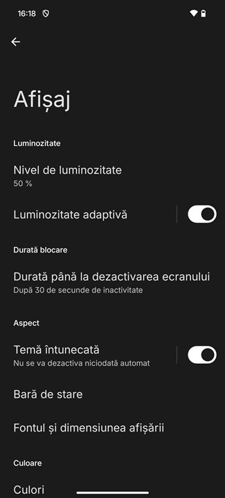 Meniul cu setări ale afișajului de pe Nothing Phone (3a) Lite: