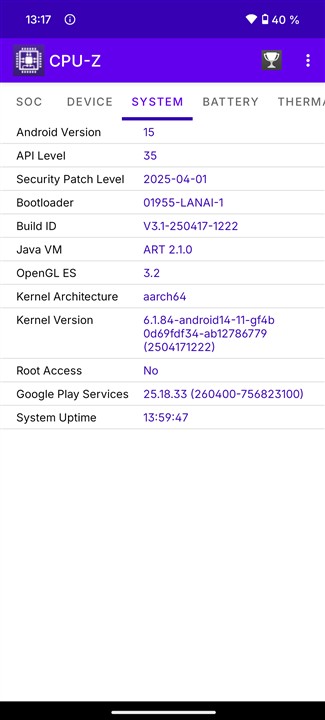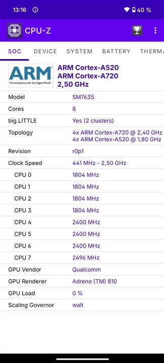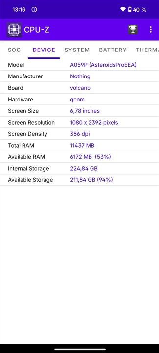 Capturi din CPU-Z cu informații despre Nothing Phone (3a) Pro: