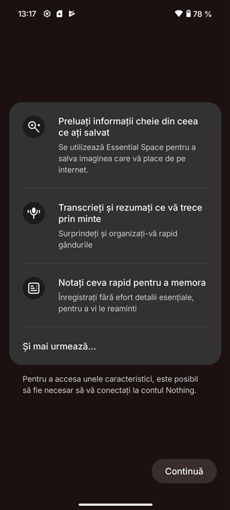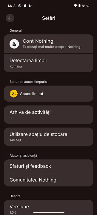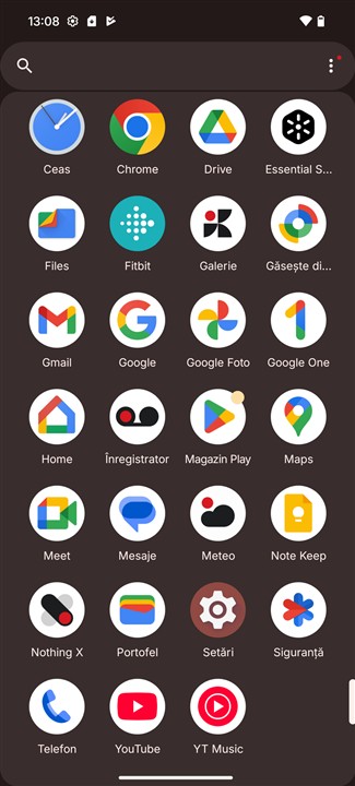 Ca aplicații preinstalate, din nou numai de bine. Pe lângă cele câteva de la Google (nici măcar cu acestea nu s-a exagerat), mai apar doar Essential Space, Galerie, Înregistrator, Meteo și Nothing X. Strict esențialul.