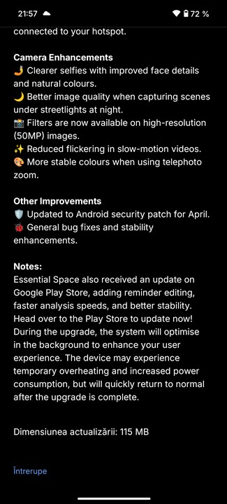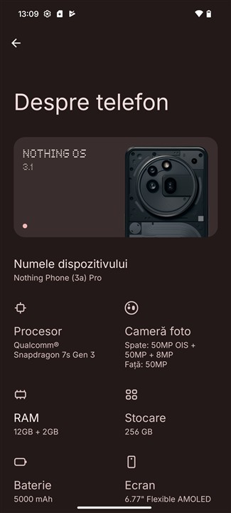 Aș vrea să punctez și managementul bun al temperaturilor, în sensul că Nothing Phone (3a) Pro nu se încinge deloc, abia dacă devine o idee mai călduț după zeci de minute de sarcini complexe, precum testele de benchmark.