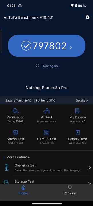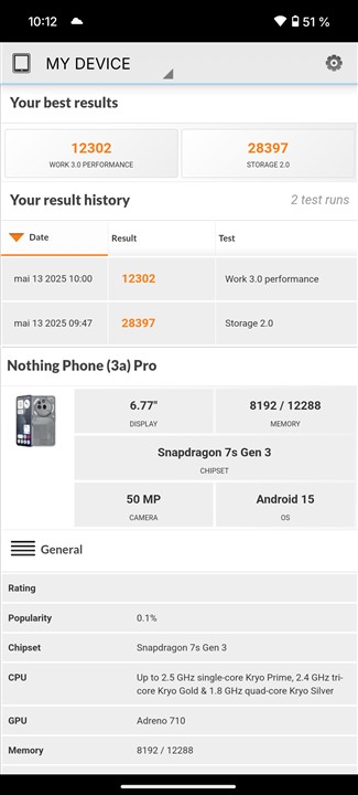 Așa cum precizam la începutul capitolului anterior, Nothing Phone (3a) Pro nu a primit un procesor dintre cele mai performante, iar asta este clar din scorurile obținute în testele de benchmark rulate. Dar, mă văd nevoit să repet, asta nu înseamnă că simți cumva acest smartphone lent sau „submotorizat”, cum s-ar spune.
