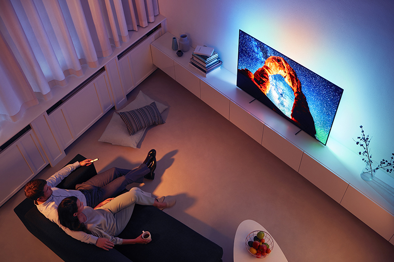 - Tehnologia Ambilight pe trei laturi se îmbină perfect cu ecranul fără ramă OLED;