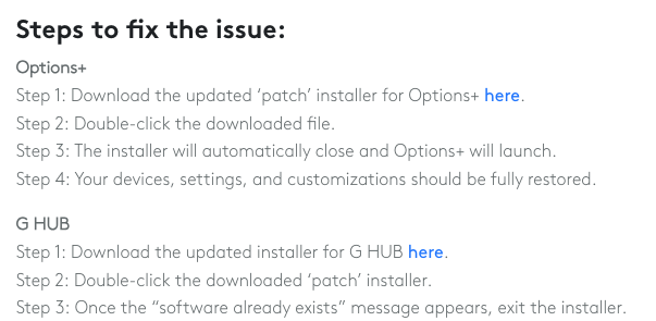 Sunt afectate Options+ și G Hub pe MacOS. Cei ce folosesc aplicațiile respective pe Windows nu au parte de vreo problemă.