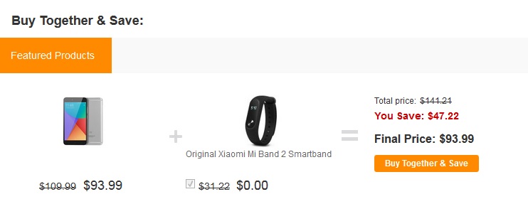 În miez de noapte am găsit o ofertă interesantă pentru două produse Xiaomi luate ca pachet. Pentru o perioadă foarte limitată de timp retailerul gearbest.com oferă smartphone-ul Xiaomi Redmi Note 5A versiunea globală + brăţara inteligentă Xiaomi Mi Band 2 la super preţul de 93.99 dolari. Se adaugă şi o taxă de transport de 1.15 dolari şi avem un preţ final de 95.14 dolari, adică aproximativ 370 lei fără TVA.