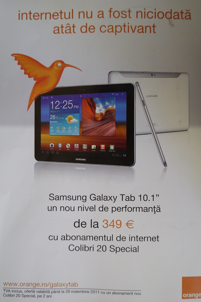 Mâine va avea loc prezentarea oficială a lui Galaxy Tab 10.1 în portofoliul Orange. Deja a apărut prețul și oferta de care se vorbea pe twitter. Prețul se pare că va fi de 349 euro cu abonamentul Colibri 20 Special ce conține un trafic de date de 4 GB la viteze de 14.4 Mbps și ulterior se trece la 128 kbps.