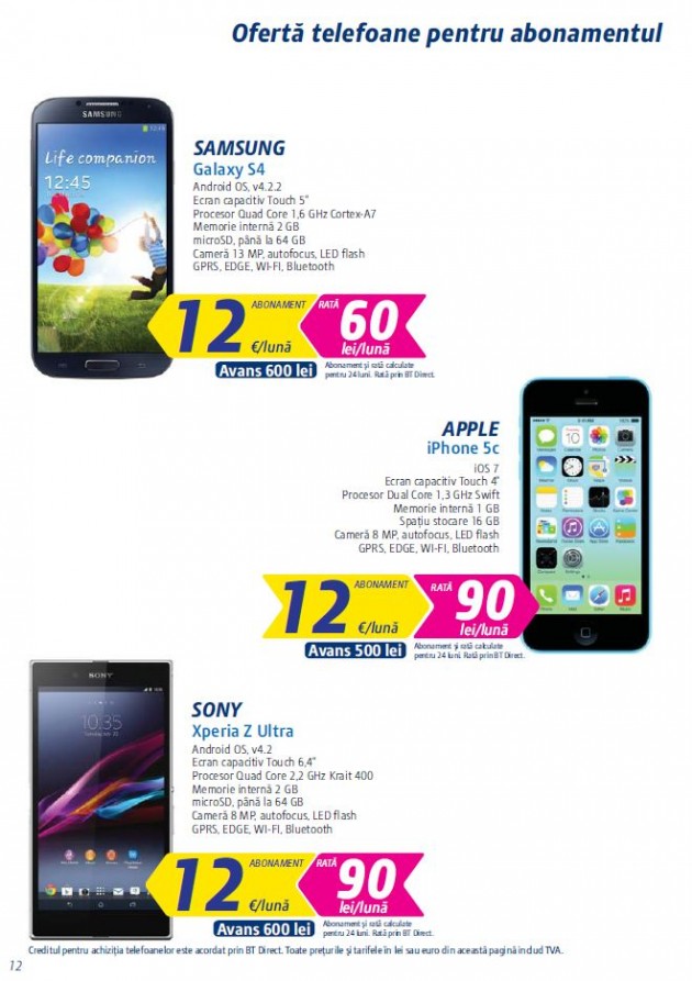 1. Samsung GALAXY S4 – 600 lei + rată de 60 lei / 24 luni + abonament Digi Mobil Complet 12 / 12 euro pe lună;