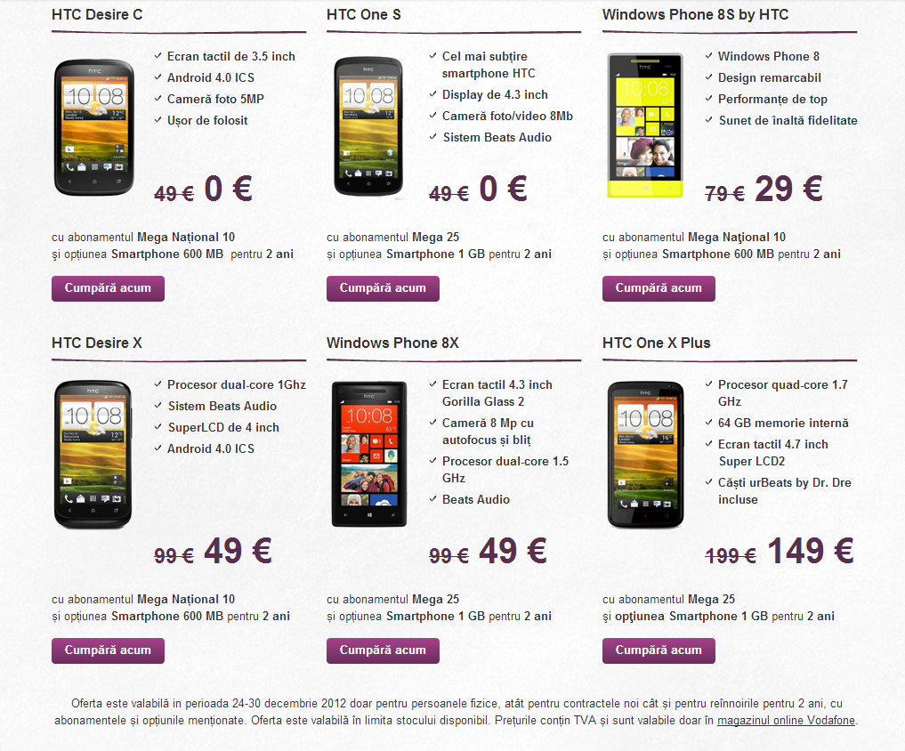 Oferta Vodafone este valabilă până pe 30 decembrie 2012.