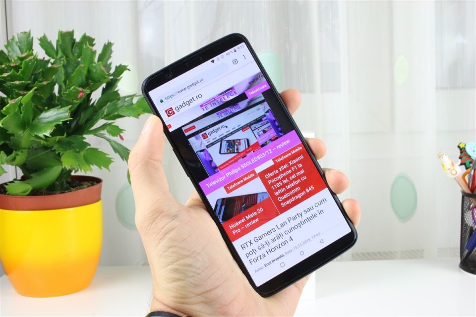 Simplitate, eleganță, atenție la detalii = OP 5T. Din punctul meu de vedere nu s-a făcut nicio concesie în ce privește materialele, finisarea etc. Lipsește logo-ul în partea frontală, stilizat neintruziv pe spate. Este compact pentru cei 6 inch ai săi, iar aspectul 18:9 îl face ușor de utilizat și cu o singură mână.