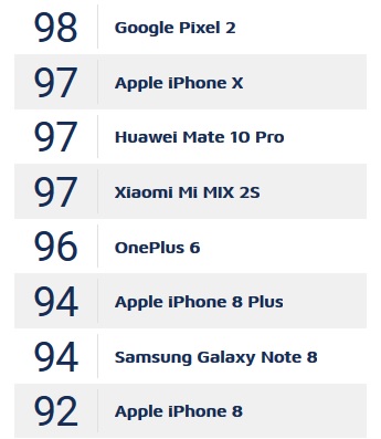Cu un scor mediu de 96 puncte, OnePlus 6 se situează pe poziţia a zecea în topul DxOMark, peste iPhone 8 sau 8 Plus, dar sub Xiaomi Mi Mix 2S sau Huawei Mate 10 Pro. Telefonul celor de la OnePlus impresionează pe partea foto unde a obţinut 100 de puncte, însă dezamăgeşte oarecum la captura video unde abia dacă a atins 87 de puncte.