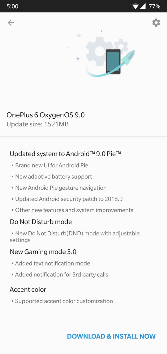 Actualizarea face trecerea de la OxygenOS 5.X direct la OxygenOS 9.0, probabil pentru a permite utilizatorilor o înţelegere mult mai uşoară dintre interfaţa proprietară OnePlus şi versiunea sistemului de operare Android.