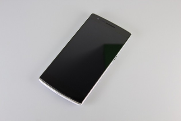 O ramă argintie înconjoară smartphone-ul și aduce un plus de rigiditate, s-a folosit policarbonat pentru spatele telefonului. S-a mers pe ideea de telefon unibody, fără a avea capac spate și astfel fără a oferi acces la bateria de 3100 mAh. Mi-a amintit puțin de HTC One X, policarbonat și la device-ul taiwanez, dar OnePlus One se situează cu o clasă peste. Aduce un grip excelent pentru un telefon cu diagonala de 5.5 inch.